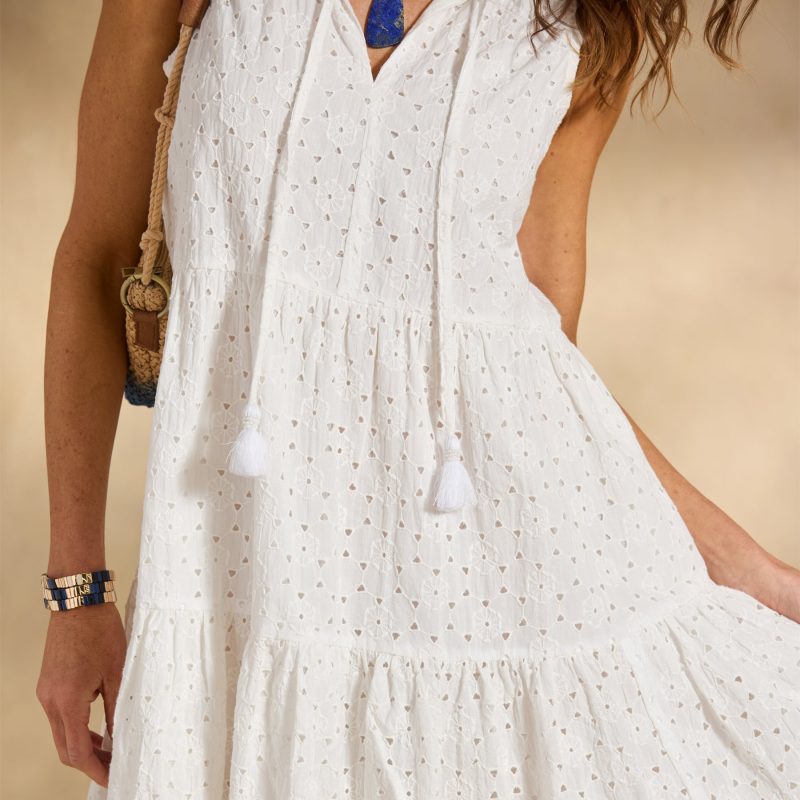 The ultimate one-and-done outfit. our Aisha Printed Dress is so effortless. you’re going to want one in every color and pattern! This gauzy knee-length popover features pretty pintucking. an all-over floral print with border details and a front tie with wooden beads. Cotton. Machine wash. Imported. Exclusive. Sizes XXS (00). XS (0?C2). S (4?C6). M (8?C10). L (12?C14). XL (16?C18). Approx. 33l.