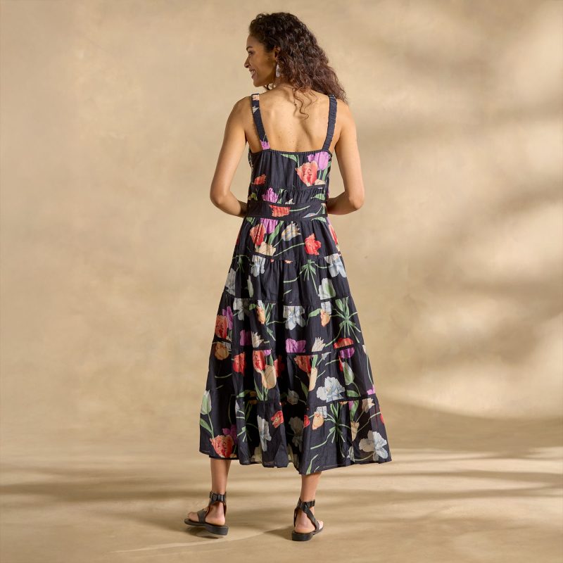 Every bit as romantic as her namesake’s novels. our Austen maxi is strewn with bright tulips. Featuring five flowing tiers plus beautiful binding seam at the bodice. side seam pockets and side zipper. Cotton/silk. Machine wash. Imported. Exclusive. Sizes XS (0-2). S (4-6). M (8-10). L (12-14). XL (16-18). XXL (20-22). Approx. 50l.