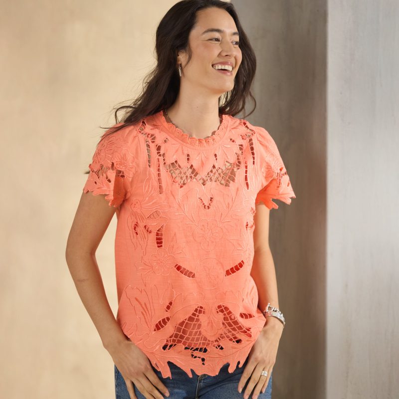 Tonal openwork details grace this easy lace top. Keyhole at the back. Camisole included. Cotton. Hand wash. Imported. Exclusive.?
