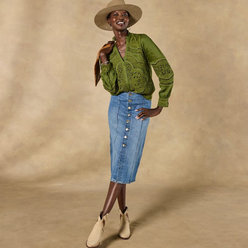 A worldly engineered print is the focus of our graceful Bingham Lace Top. with open embroidered eyelet throughout. natural shell button front and cuffs and ruffle neckline detail. Ramie. Hand wash. Imported. Exclusive. Sizes XS (0–2). S (4–6). M (8–10). L (12–14). XL (16–18). XXL (20–22). Approx. 24.5l.