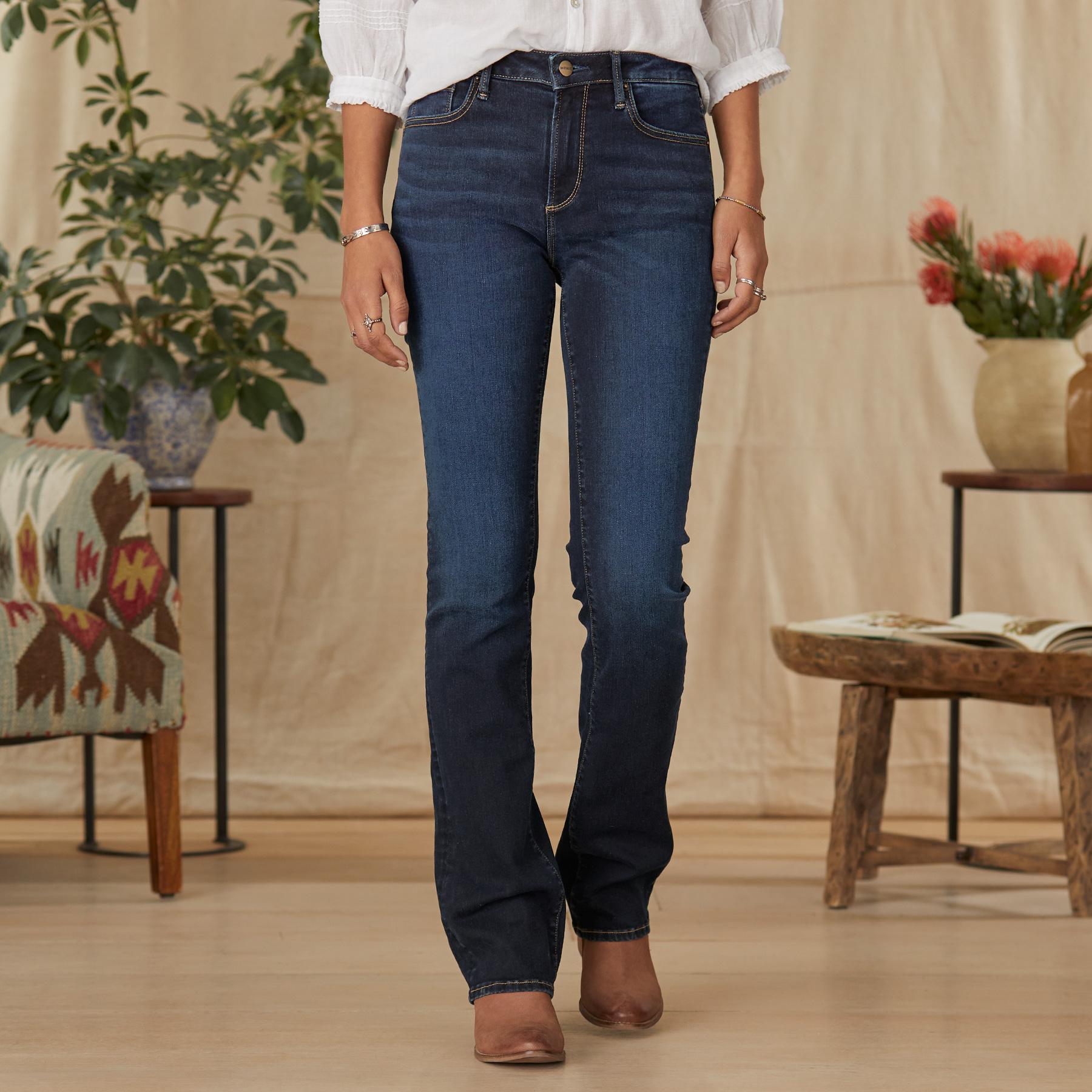 You can never go wrong with a classic. comfortable and always in style by Driftwood. Our love for bootcut can be dressed up or down in this medium wash. with an ever so light fade and whiskering. classic 5 pocket styling. Cotton/spandex. Machine wash. Imported. Sizes 24-32. 31 or 32 inseam; 9.5 rise; 16 leg opening.