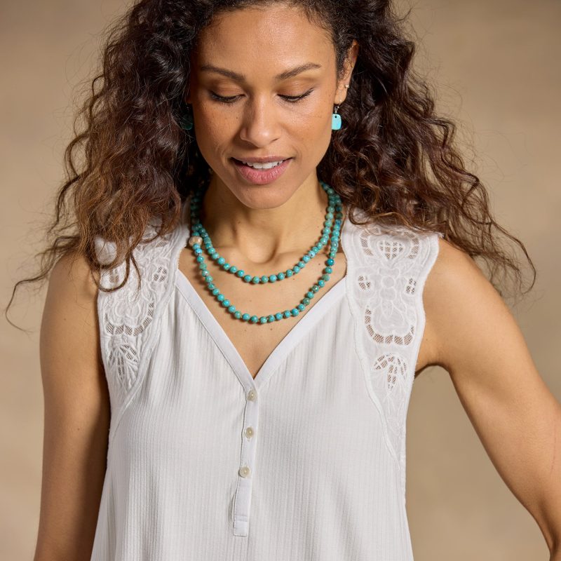 Beautiful applique work with embroidery and cut-out details adds a feminine touch to our Layla Lace V-neck Tank. Viscose/elastane/cotton/nylon/polyester. Machine wash. Imported. Exclusive. Sizes XS (0–2). S (4–6). M (8–10). L (12–14). XL (16–18). XXL (20–22). Approx. 24.5l.