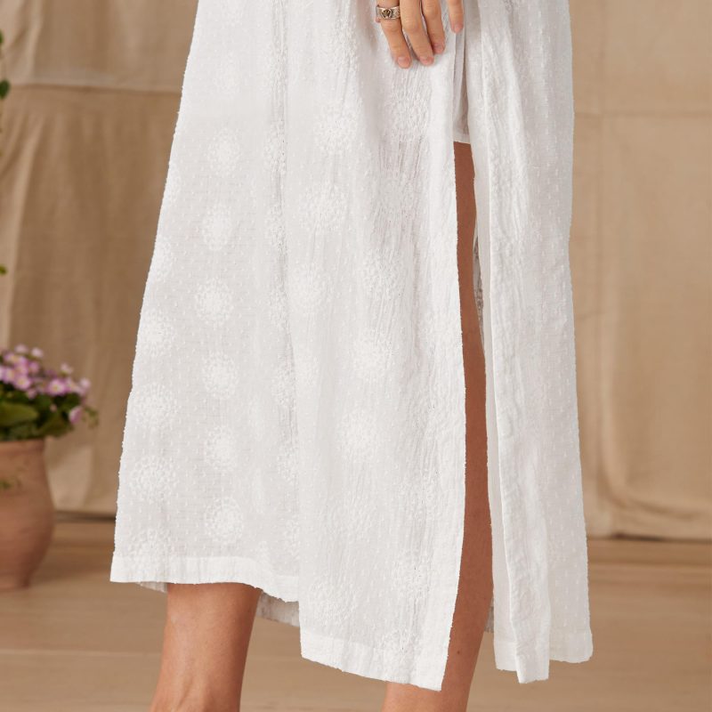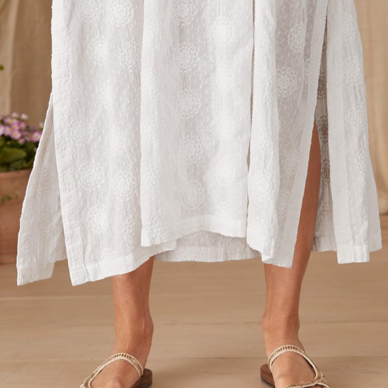 This softly patterned sundress is perfect as a beach cover-up or for brunch. An heirloom-quality piece for the conscious consumer. Cotton. Machine wash. Imported. Sizes XS (0 to 2). S (4 to 6). M (8 to 10). L (12 to 14). XL (16 to 18). XXL (20 to 22). Approx. 46-1/2L.