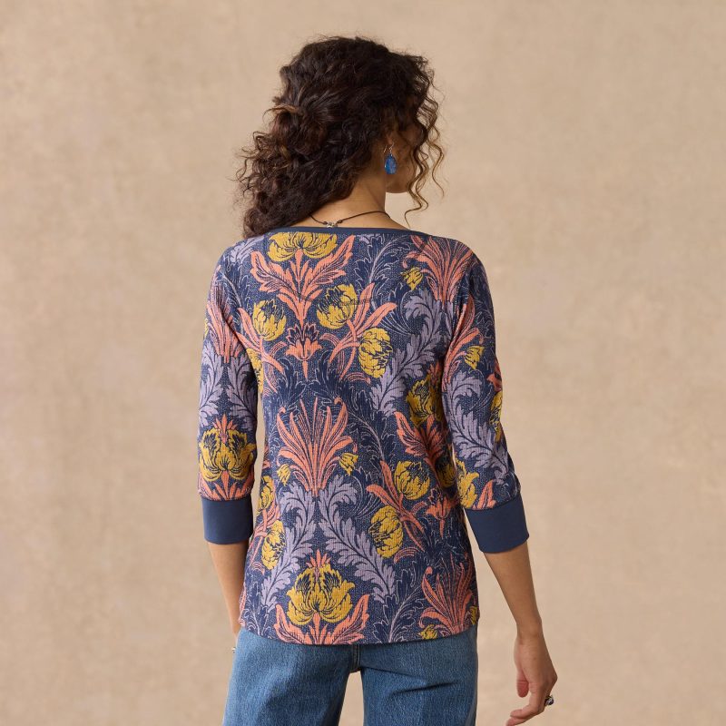 Our thermal henley in an oversized placed floral print is so lovely with embroidery at the placket. metal buttons and contrast twill tape details. Cotton/spandex. Machine wash. Imported. Exclusive. Sizes XXS (00). XS (0??). S (4??). M (8??0). L (12??4). XL (16??8). Approx. 23.5l.