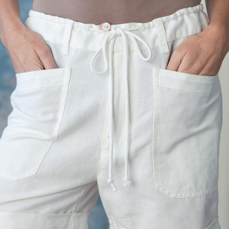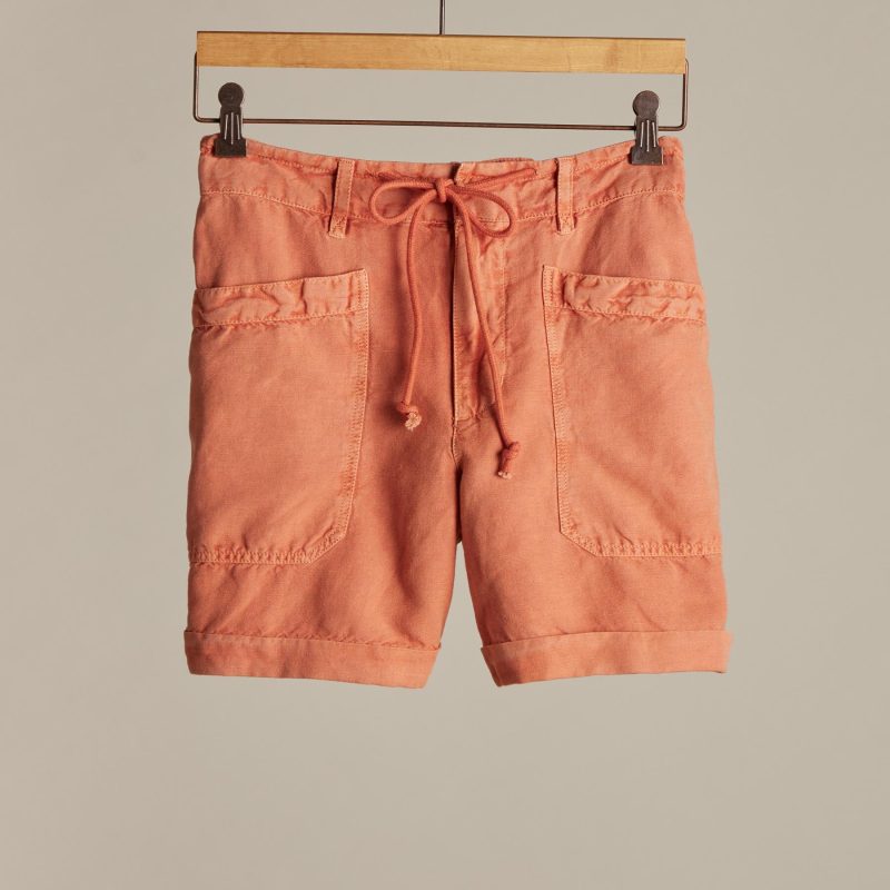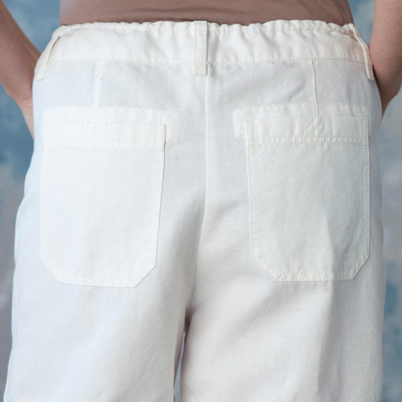 In a versatile style and a flattering fit. these soft. garment-dyed shorts feature a subtle woven texture. and delightfully chic. sunny weather details: tacked. rolled cuffs. waist tie and belt loops. front and back patch pockets. back darts for fit. and natural shell button closure. Linen/cotton. Machine wash. Imported. Exclusive. Sizes XXS (0 to 0). XS (0 to 2). S (4 to 6). M (8 to 10). L (12 to 14). XL (16 to 18). 5 inseam.