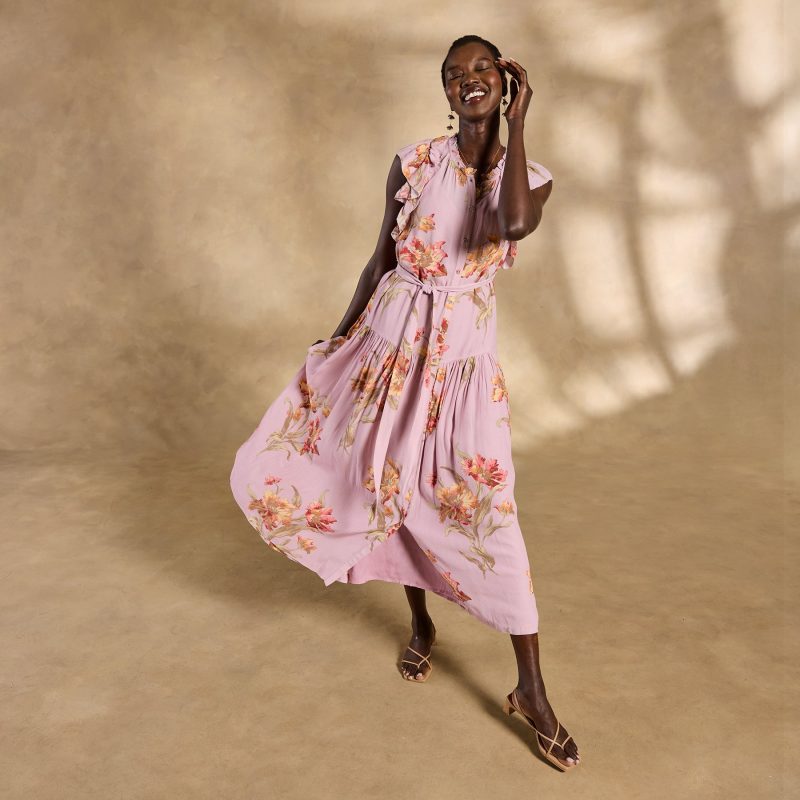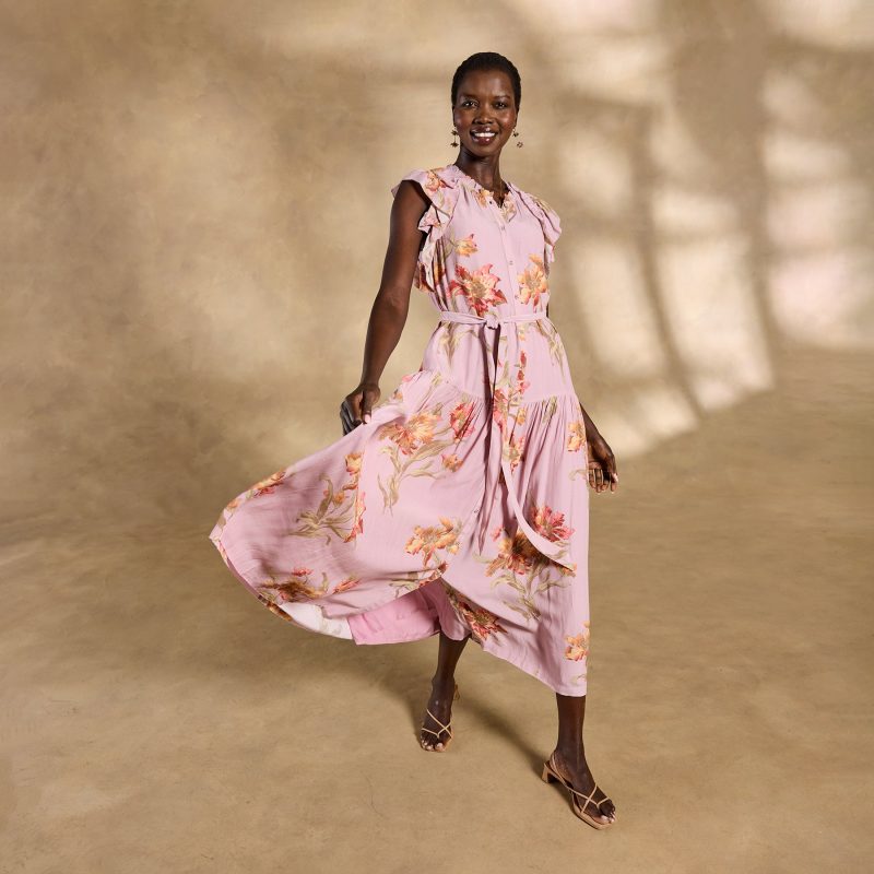 Effortlessly feminine. our Tierra tiered maxi is straight out of a rom-com montage??featuring a demure button front. ruffled neckline and sleeves plus a removable belt. Separate slip. Viscose/cotton. Machine wash. Imported. Exclusive. Sizes XXS (00). XS (0?C2). S (4?C6). M (8?C10). L (12?C14). XL (16?C18). Approx. 49.5l.