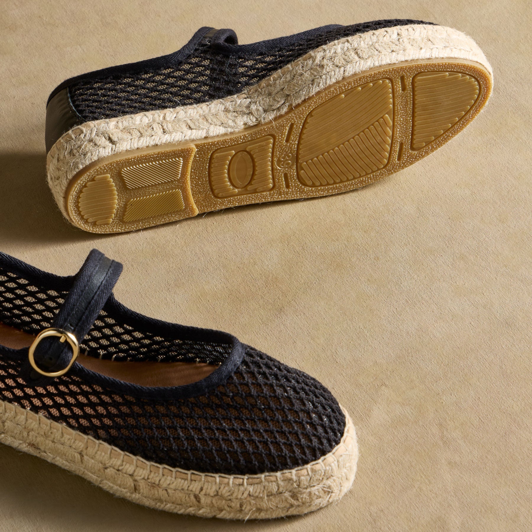Light as a breeze. the Volta Mesh Espadrilles combine timeless style with effortless comfort. Featuring a breathable mesh upper. classic Mary Jane strap with a gold-tone buckle. and a handwoven jute sole. these espadrilles are perfect for sun-drenched strolls and laid-back elegance.