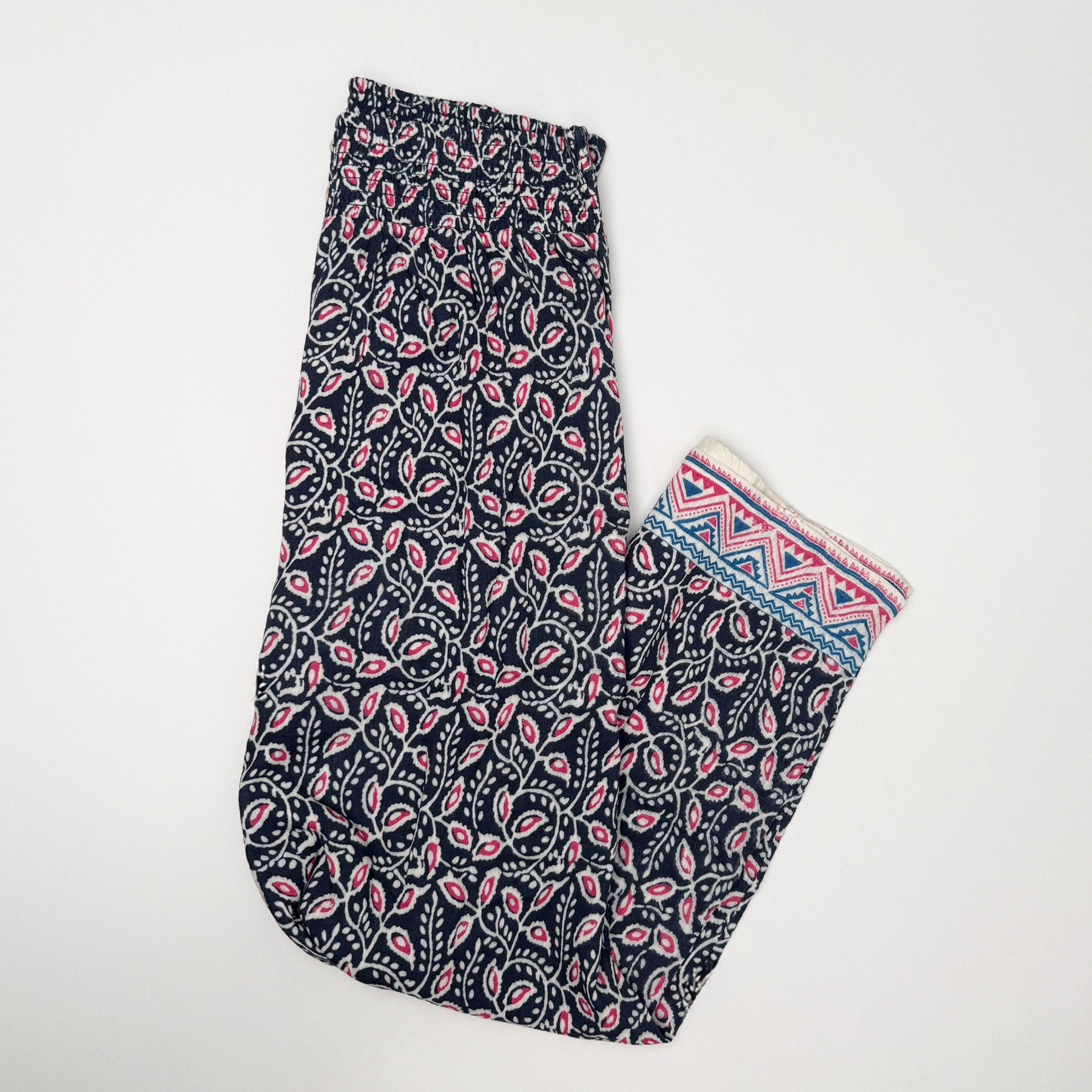 The easiest. breeziest warm weather pants. with wide-leg silhouette. smocked elastic waistline. decorative pearl buttons and festive seasonal prints. Pull them on and go anywhere in style. Cotton gauze. Machine wash. Imported. Exclusive. Sizes XS (0?C2). S (4?C6). M (8?C10). L (12?C14). XL (16?C18). XXL (20?C22). 29 inseam