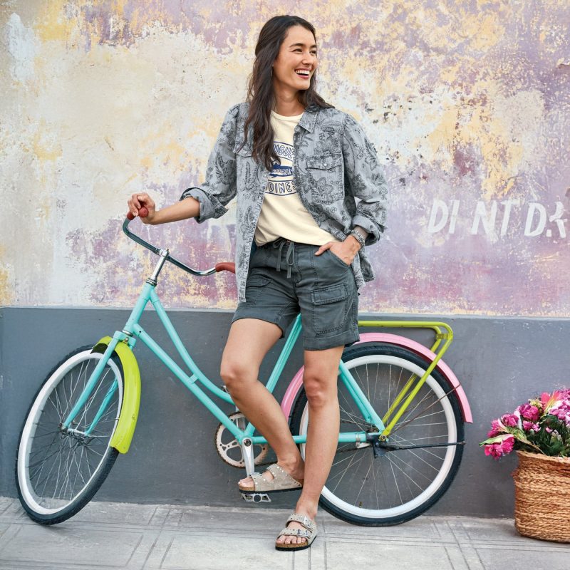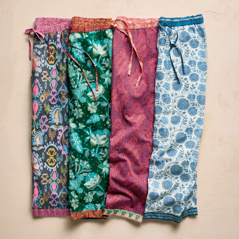 The easiest. breeziest warm weather pants. with wide-leg silhouette. smocked elastic waistline. decorative pearl buttons and festive seasonal prints. Pull them on and go anywhere in style. Cotton gauze. Machine wash. Imported. Exclusive. Sizes XXS (00). XS (0–2). S (4–6). M (8–10). L (12–14). XL (16–18). 27 inseam